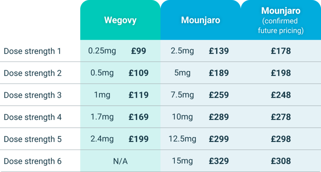 If Mounjaro is no longer the right treatment for you or you feel the new price is unaffordable, we offer alternative weight loss treatments including Wegovy, which can be a more affordable alternative for some patients.